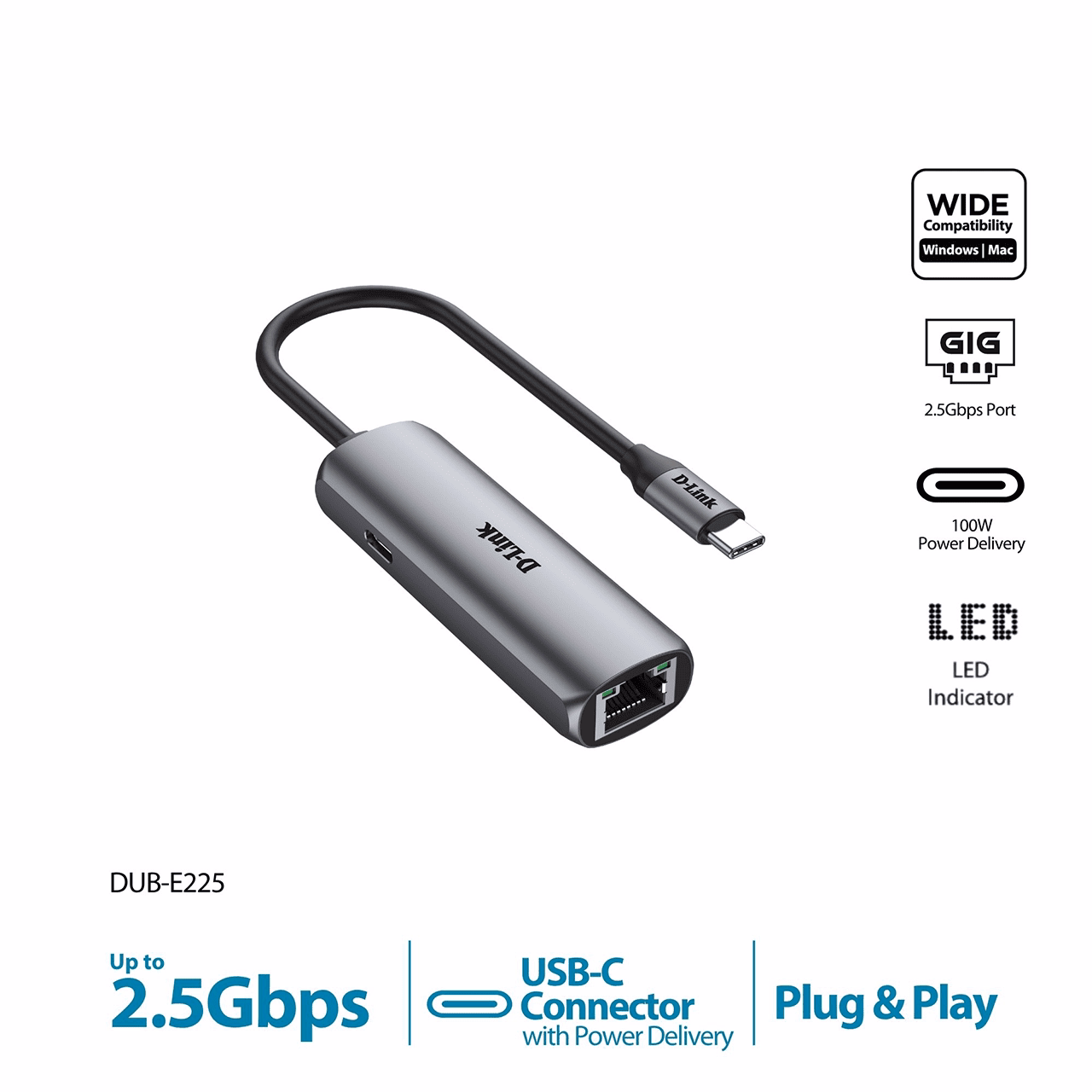 Bộ chuyển đổi USB-C sang Ethernet 2.5Gbps DLINK DUB-E255 với công suất cung cấp 100W