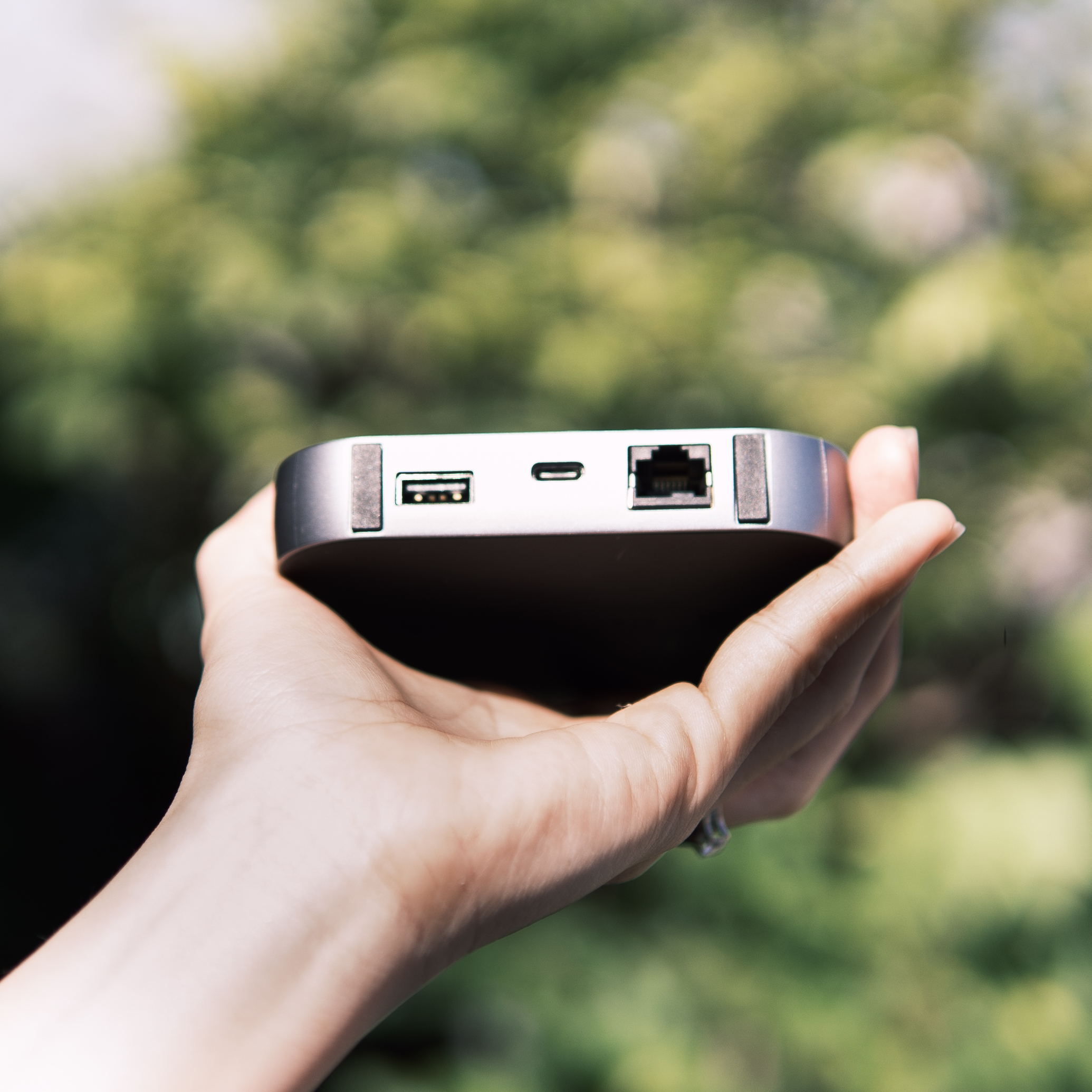 Có 1 USB Loại-A, 1 USB Loại-B, 1 cổng Ethernet và 2 khe kết nối TS-9 ở dưới cùng của M1. Với cổng USB Type-A, cổng USB Type-A và cổng Ethernet, bạn kết nối các thiết bị khác và truyền tải nội dung từ ổ đĩa USB và ổ cứng gắn ngoài. Bạn cũng có thể tính phí thiết bị di động của mình bằng cổng USB Loại A.